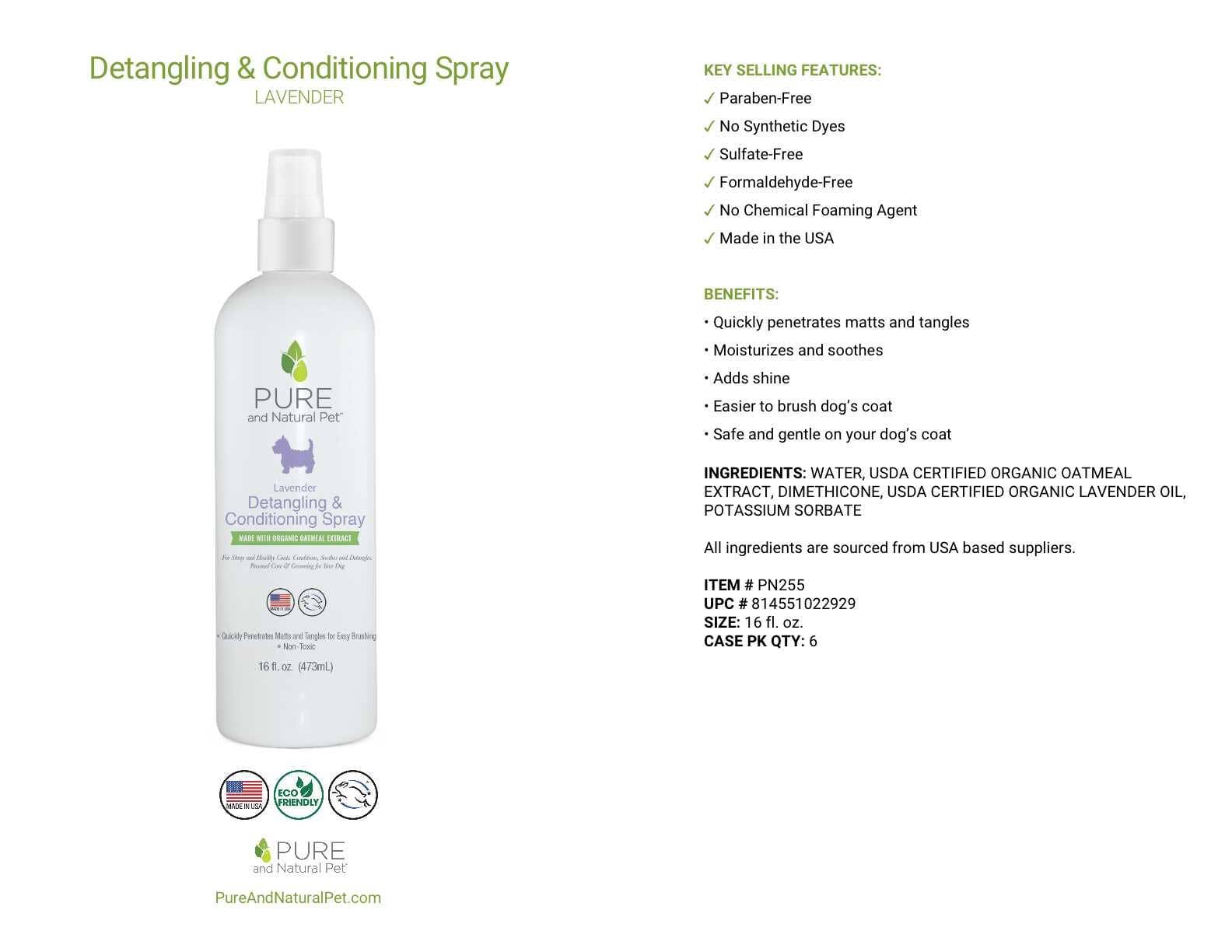 Now you can easily brush your dog’s coat and remove stubborn knots for a softer and more manageable coat. Made with USDA Certified Organic Oatmeal Extract. Leaves fur shiny and tangle-free.
